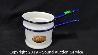 Lot #0340: Enamelware Dishes & Griswold Pancake Maker