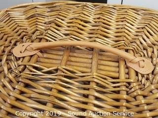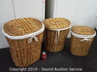 Lot #0235: Graduating Linen Lined Wicker Wove Baskets w/Lids