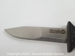 Item Description:  Fixed blade knife is a Peacemaker III, comes  with sheath, 8.5" long, 4" blade. Kershaw is  8.5" long with 3.5" blade with sheath. Both  are like new, very sharp.