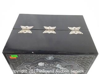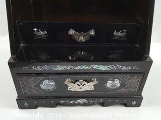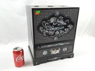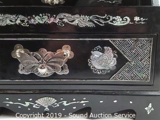 Lot #0066: Vtg. Black Lacquered MOP Korean Jewelry Box