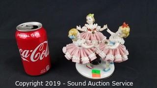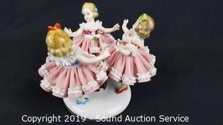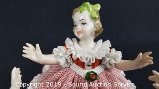 Lot #0036: Vtg Pink Dresden Porcelain Victorian Sculptures