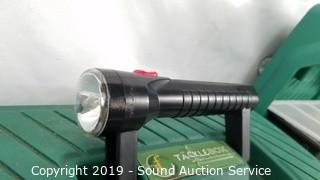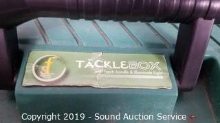 Item Description: Includes spinning lures, bobbers, rope, line, hooks, bait, lead weight. Each tackle box has a torch handle and light inside. 6" x 13" x 8".