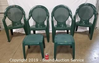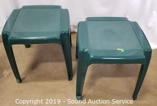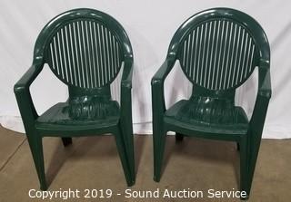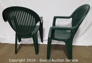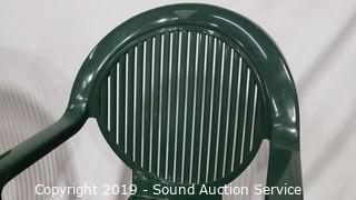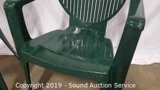 Lot #0026: 4 Green Plastic Patio Chairs w/2 Side Tables