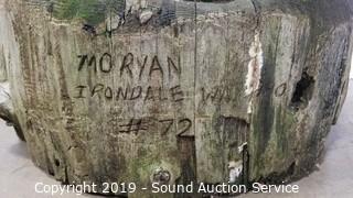 Item Description: 16" diameter base. Has been weathered. Marked "Moe Ryan, Ironville, WA 11/72"