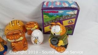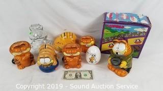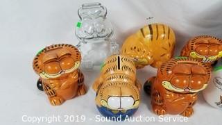 Lot #0333: 8 Collectible Garfield Glass & Ceramic Coin Banks