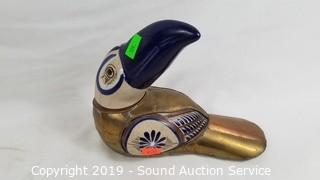 Lot #0169: Brass Duck Book Ends & Mexican Pottery Bird
