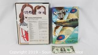 Item Description: Commodore 64 Spitfire 40 computer game, and The Holowczyn Battle of the Moscow Road table top game. Both look complete with game manuals.
