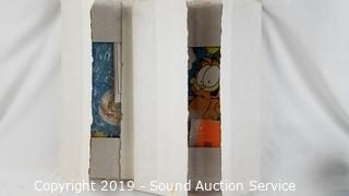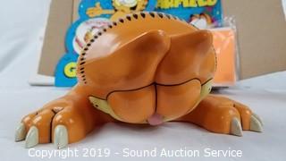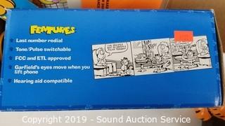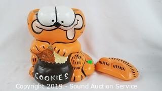 Item Description: Birthday cake character design parts sets, telephone (tail is not attached, unsure how it attaches, believe it missing a clip), sleepy Garfield telephone, and cookie jar.