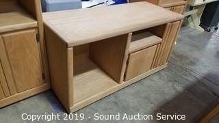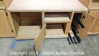 Lot #0013: Natural Finish Oak Rolling Modular Media Cabinet