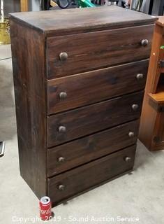 Lot #0025: Nice Dark Stained Pine 5 Drawer Dresser