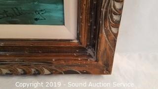 Item Description: Painted on canvas with a nice carved wooden frame. 32" x 38".