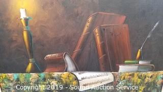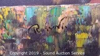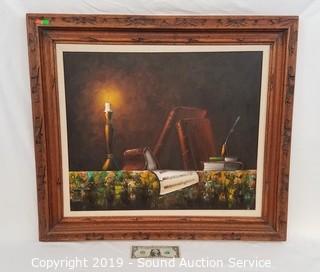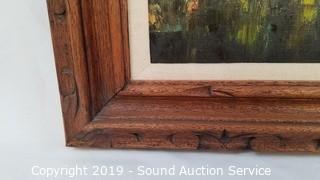 Item Description: Painted on canvas with a nice carved wooden frame. 28" x 31".
