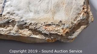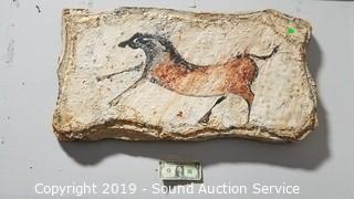 Item Description: Image of a Horse, made from foam by artist Sam Deuel 12/49. 20" x 37". Some wear to the paint, adds to the character.