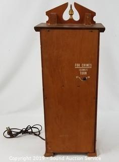 Item Description: Does work, wants to chime, but hammers barely hit the bars, gears are little noisy. Approx. 20" H, 7" W, 5" D.