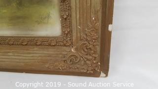 Item Description: Old gilded frame, some damage to the gilding, with glass. 16.5" x 28.5".