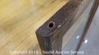 Item Description: 2 of the doors are leaded stained & beveled glass. one of the door the peg broke that is slides and hangs from. Solid oak construction. 58.5" H x 36" W x 14" D.