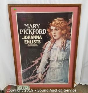 Lot #0090: Vtg. Mary Pickford in Johanna Enlists Poster Print