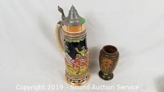 Lot #0204: Vtg. Pottery Console Bowls, Vase & German Stein