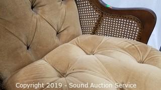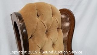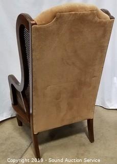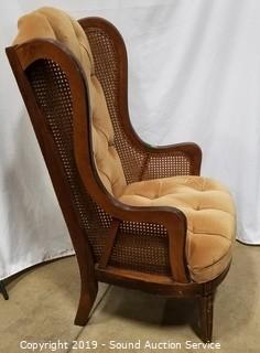 Lot #0009: Vtg. Tufted Cane Side Wingback Accent Chair