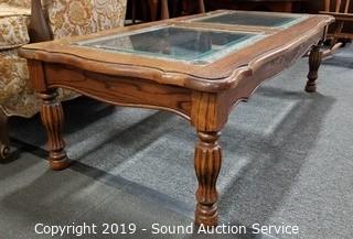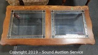 Lot #0011: Beveled Glass Top Oak Coffee Table