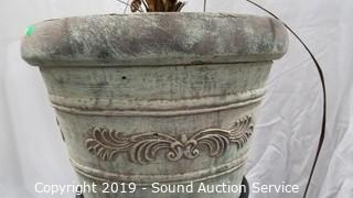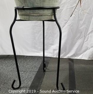 Lot #0007: Live Palm Plant w/Pot & Wrought Iron Stand