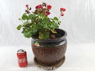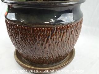 Item Description: Glazed pottery planter, 9" x 9" dia.