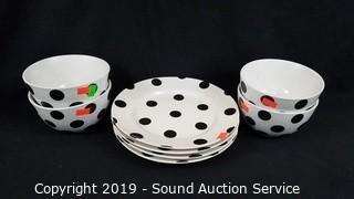 Lot #0101: Rose Print & Black & White Polka Dot Dish Set
