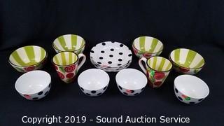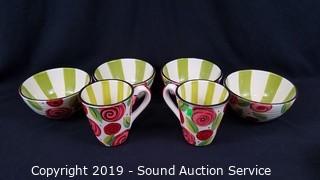 Item Description: Rose print by Housewares = 2 mugs, 4 bowls, Polka Dot by Rosanna = 4 bowls & 4 lunch plates.