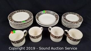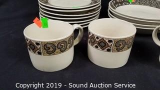 Item Description: 4 mugs, 4 bowls, 7 saucers/snack plates, 7 lunch plates.