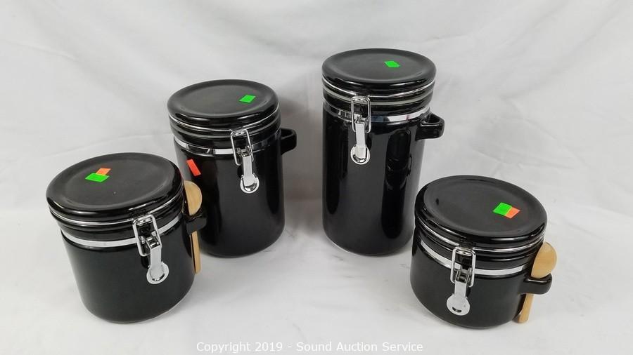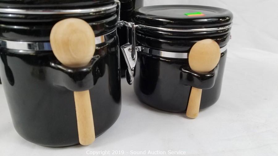 Item Description: 1 cup and 4 cup measuring cups. 2 of the canisters have spoons.