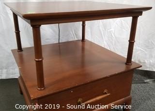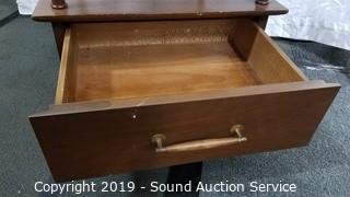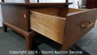 Lot #0011: Mid Century Side Table w/Single Drawer & 3-Outlets
