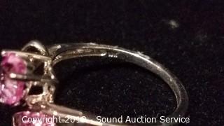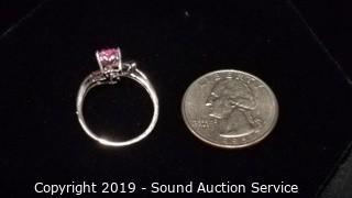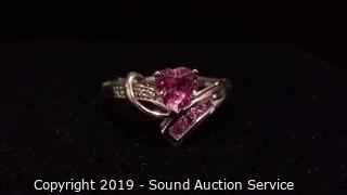 Lot #0186: Beautiful 10k White Gold Pink Heart Ring