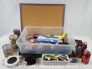 Lot #0365: Cork Board & Tote Loaded w/Office Supplies