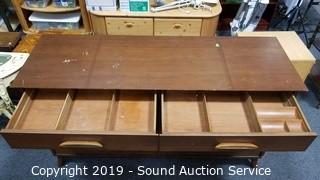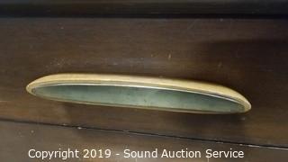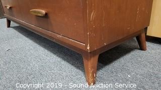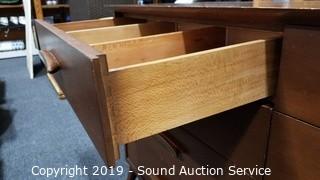 Item Description: Top drawer is sectioned with jewelry tray. Dovetail construction, some wear to the finish, in good condition. 33" T x 60" W x 20" D.