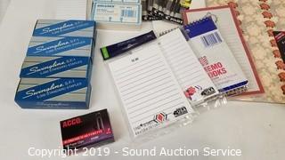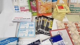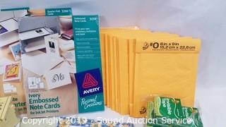 Item Description: 6" x 9" padded envelopes, post it notes, tape, notepads, gel pen refills, index cards, label printer paper, and more.