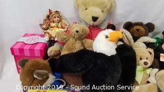 Lot #0287: Plush Toys, Teddy Bears & Small Porcelain Doll