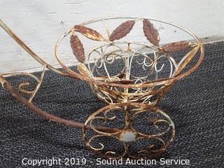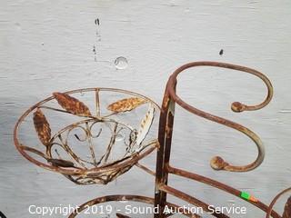 Lot #0372: Rustic Wrought Iron Planter & Bench