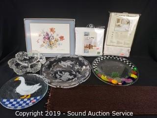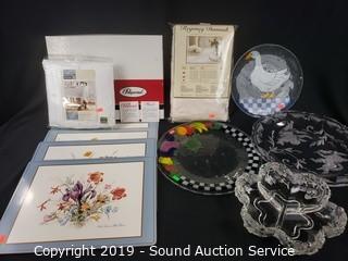 Lot #0255: Serving Dishes, Tablecloths, Placemats & Runner