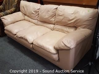 Lot #0103: Viewpoint Leatherworks Beige Sofa