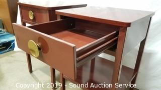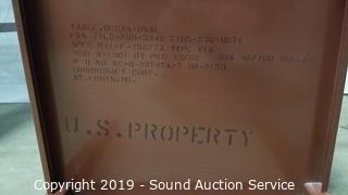 Item Description: Marked US Property on the bottom. Single drawer, laminate top, steel construction. Some minor wear otherwise both in great condition. 28" H x 17" W x 16.5" D.