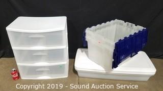 Lot #0042: 5 Totes & 3-Drawer Organizer