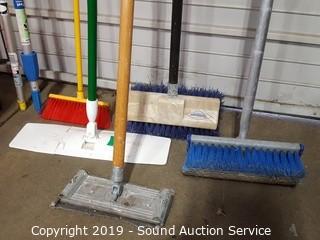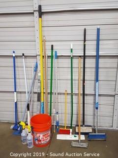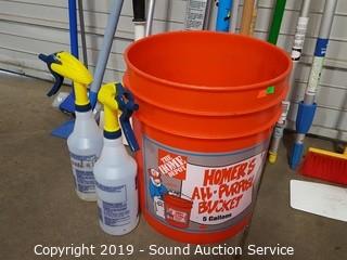Lot #0140: 5Gal Bucket w/Deck Brushes, Handles &Spray Bottles