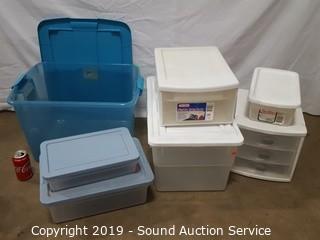 Lot #0076: 6 Various Totes w/Lids & Organizer