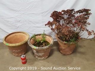 Lot #0072: 3 Fiberglass Planters w/Soil & Plant