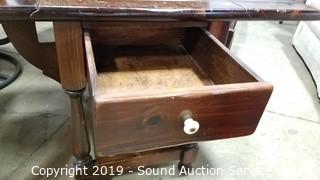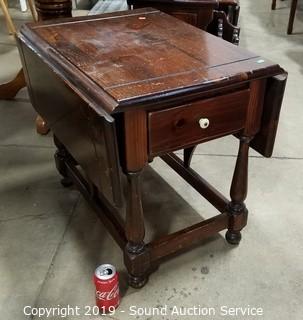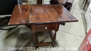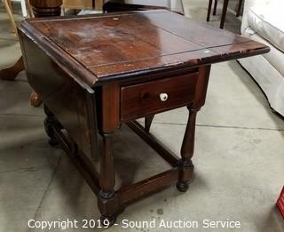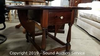 Lot #0024: Ethan Allen Pine Drop Leaf Side Table w/Drawer
