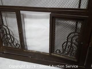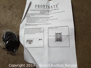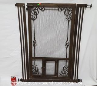 Item Description: 33.5" - 37.5" wide, 41" H. Gate door for humans and small pet door built in. Comes with instruction manual, looks to be missing one of the side adjuster knobs. By Frontgate.