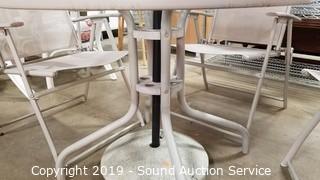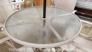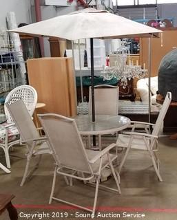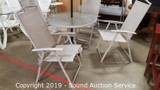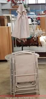 Lot #0036: Patio Table w/Umbrella & 4 Folding Chairs