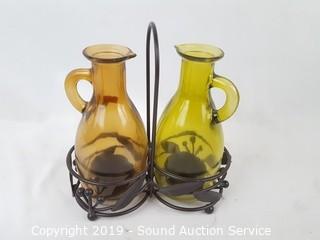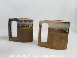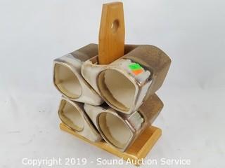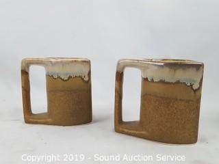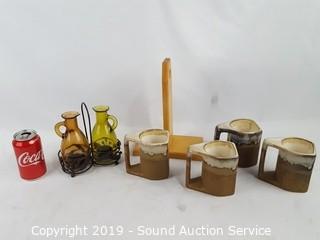 Lot #0130: Signed Pottery Coffee Mug Tower & Cruets