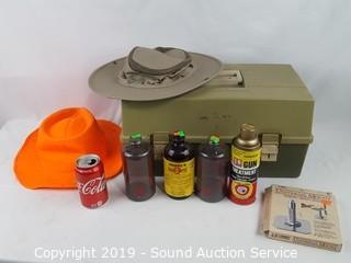 Lot #0107: Tacklebox, Sportsman & Brimmed Hats & Gun Care