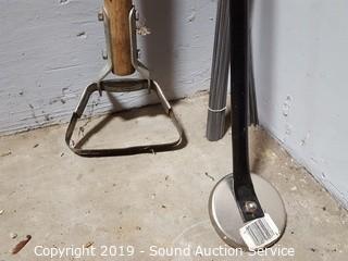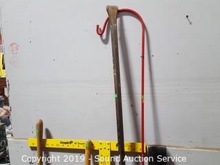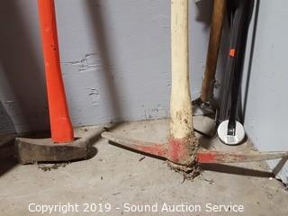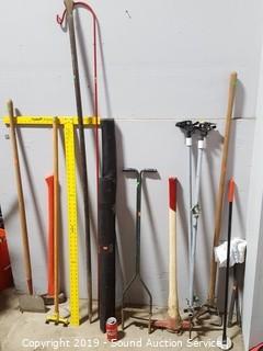 Item Description: Includes lawn aerator, shepherd's hook, digging bar, pick axe, splitting maul, ground magnet, drywall square and cultivators.